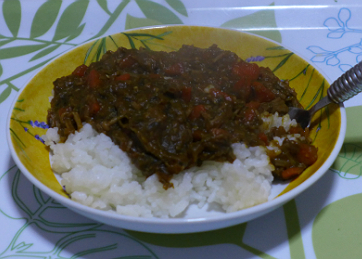 今日は『ごめんなさい』して、定時で帰って来た。 昨日は『今日もBR!』って思ってたけど、 速攻で行っても、1時間登れるかどうかだと思うと萎えた 早く帰れたので、ダンナがつまみを作ってくれた。 とりもも肉のハーブ焼き そして晩御飯は、カレーライス もともとダンナが作った、 カレー風味の野菜スープだったものが、 数日煮込むうち、カレーになった 美味しかった~