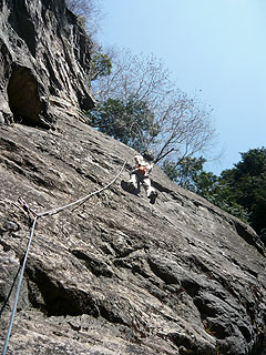 っと警戒し、いつもより頑張って早く三の木戸の岩場へ。 でも、だあ~れも来ない 淋し~。 でも、15時ころまで日向でポカポカ、幸せでした 小手調べ 5.10a トップロープ 保谷納豆 5.10c トップロープ ノーパワー。 両腕の筋肉が悲鳴をあげてる。 クライミングにならない。 何故?何故?何故? 一昨日BRで登った時は、腕は元気だったのに。。。 異常に体がだるく、ポカポカ天気が気持ちよく 思いっきり昼寝 現代若者気質 5.10c トップロープ ダンナがトップロープ残してくれてたので、回収すべく登った。 少し元気が戻り、一応クライミングになった。 手はガバなのに、バランスが悪くてうまくいかない。 不思議なルートでした。 今日も早めに終了。 F島さんの職場に届けものをしてから、『もえぎの湯』へ。 が、車でいっぱいになった駐車場を見て、混みこみの風呂を想像して温泉は断念。 そのまま帰って家お風呂に入りました。。。